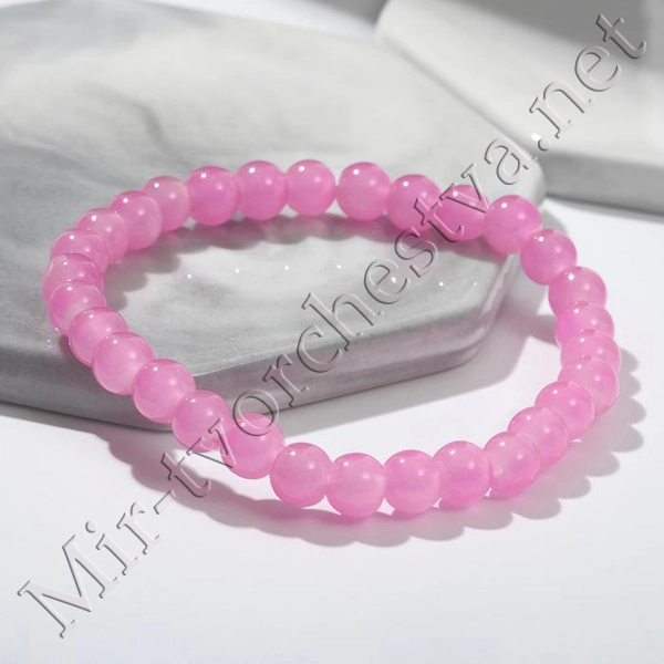 Браслет "Нить" бусина №6, d=7мм, цвет Розовый