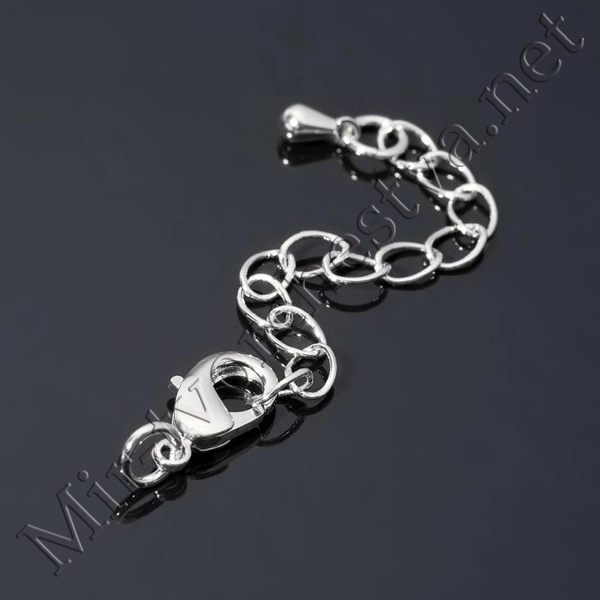 Замок-карабин родированный 10мм "Капелька" с удлинителем 5см, цвет серебро