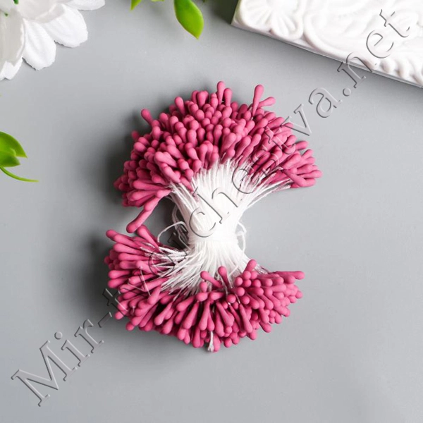 Тычинки для искусственных цветов "Капельки матовые пурпур" d=1.5мм (набор 400шт.) длина 6см