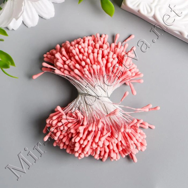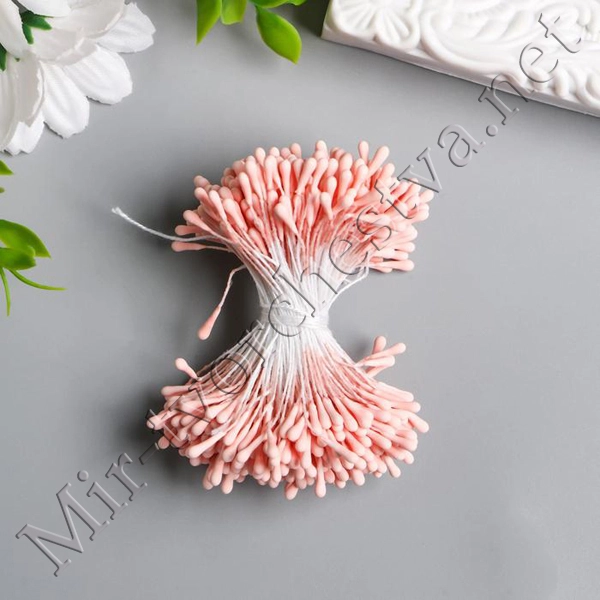 Тычинки для искусственных цветов "Капельки матовые розовый щербет" d=1.5мм (набор 400шт.) длина 6см