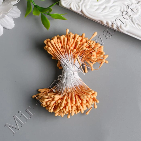 Тычинки для искусственных цветов "Капельки матовые апельсин" d=1.5мм (набор 400шт.) длина 6см