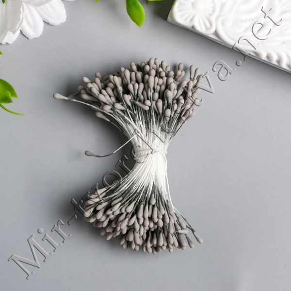 Тычинки для искусственных цветов "Капельки матовые серые" d=1.5мм (набор 400шт.) длина 6см