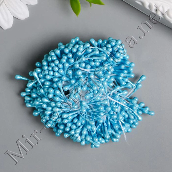 Тычинки для искусственных цветов "Капельки глянец светло-голубые" (набор 300шт.) длина 6см