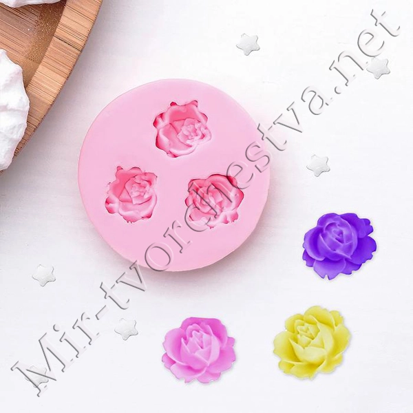 Молд силиконовый, 5 см "Три малых розы" цвет розовый 861086