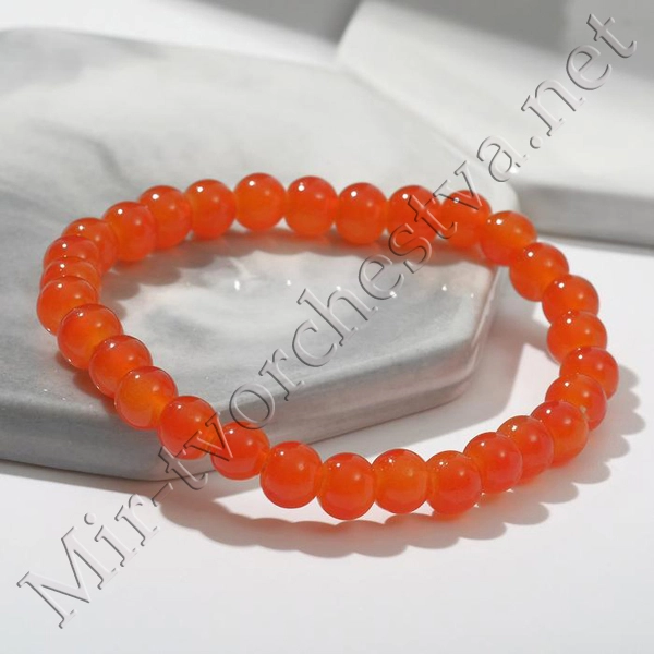 Браслет "Нить" бусина №6, d=7мм, цвет Оранжевый