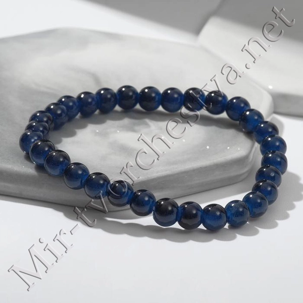 Браслет "Нить" бусина №6, d=7мм, цвет Тёмно-синий