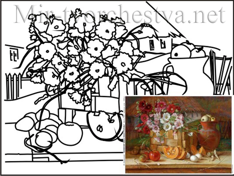 Холст на картоне с контуром, Натюрморт № 18, 30*40,Хлопок, акрил, ROSA Talent