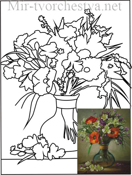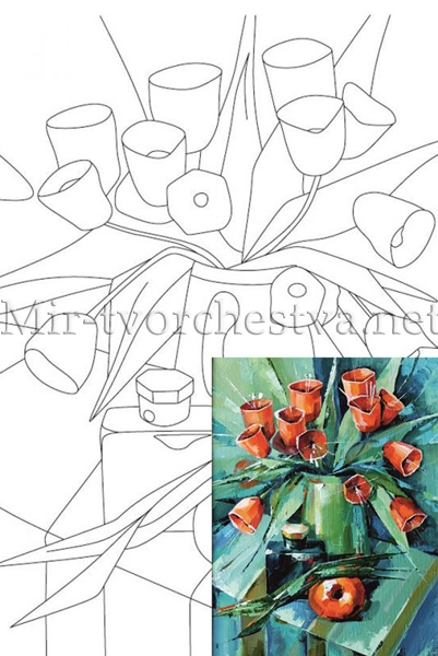 Холст на картоне с контуром, Натюрморт № 7, 30*40, хлопок, акрил, Этюд