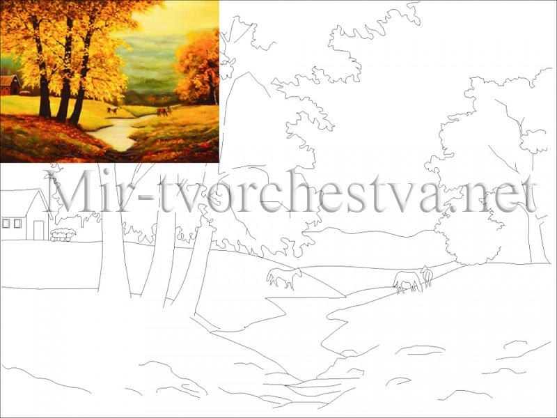 Холст на картоне с контуром, Пейзаж № 27, 30*40, хлопок, акрил, ROSA START