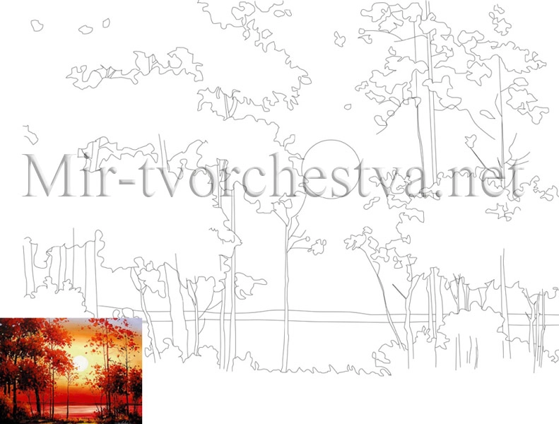 Холст на картоне с контуром, Пейзаж-2, 30х40 см, Сонет