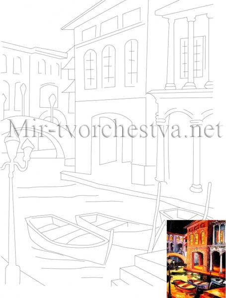 Холст на картоне с контуром, Города, "Венеция" (Пейзаж № 14), 30*40, хлопок, акрил, Этюд