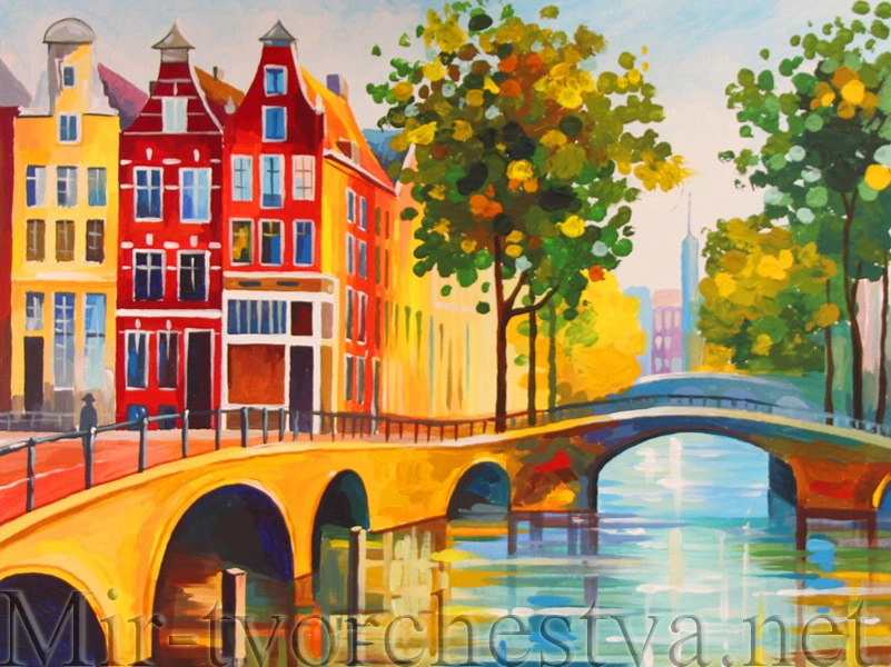 Холст на картоне с контуром, Города "Амстердам", 30*40,Хлопок, акрил, ROSA Talent