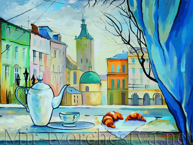 Холст на картоне с контуром, Города "Львов", 30*40,Хлопок, акрил, ROSA Talent