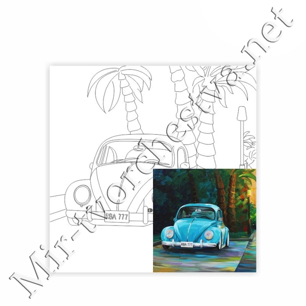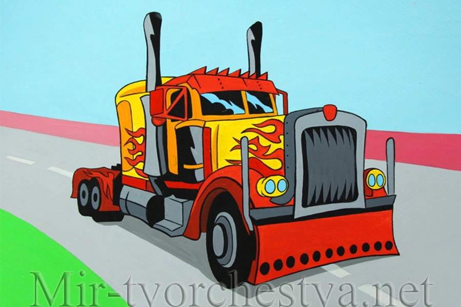 Холст на картоне с контуром, Мультфильм №30 «Грузовик», 20*30, хлопок, акрил, Этюд