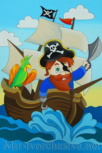 Холст на картоне с контуром, Мультфильм №31 «Пират на корабле», 20*30, хлопок, акрил, Этюд