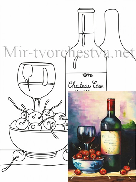 Холст на картоне с контуром, Натюрморт № 15, 30*40,Хлопок, акрил, ROSA Talent