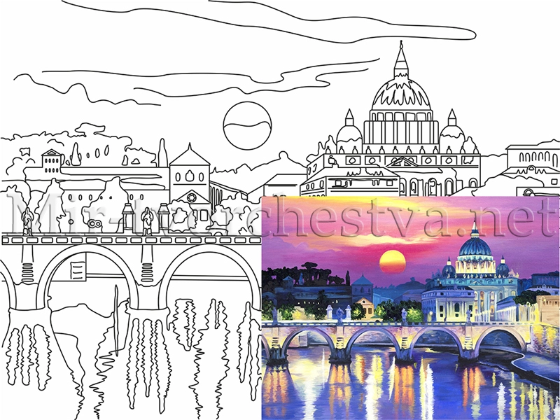 Холст на картоне с контуром, Мост, 30х40 см, Сонет