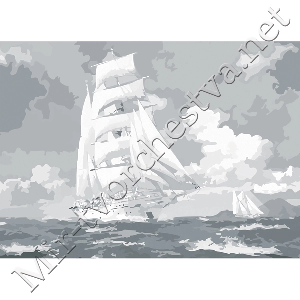 Холст на картоне с эскизом, Парусник в море, 30х40 см, Сонет