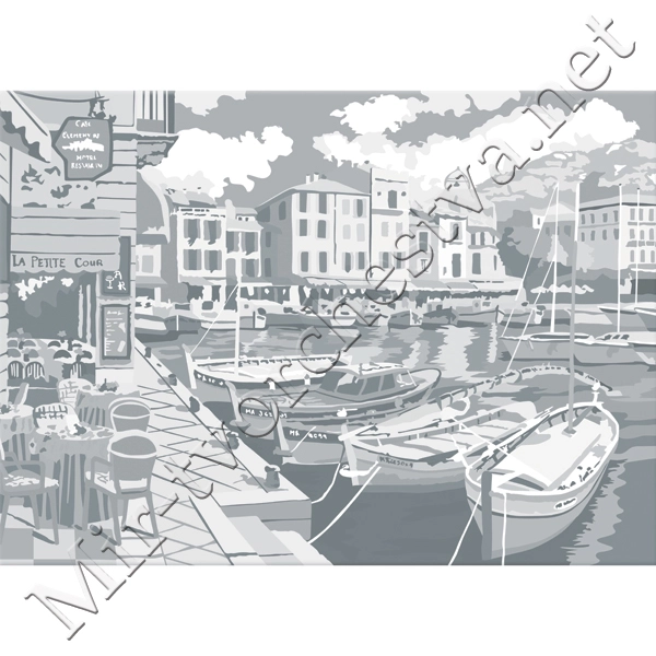 Холст на картоне с эскизом, "Городок у моря", 30х40 см, Сонет