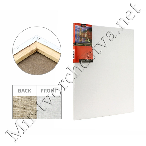 Холст на подрамнике, 40*50 см, 45% хлопок, 55% лен, 380 г/м2, Среднее зерно, Сонет